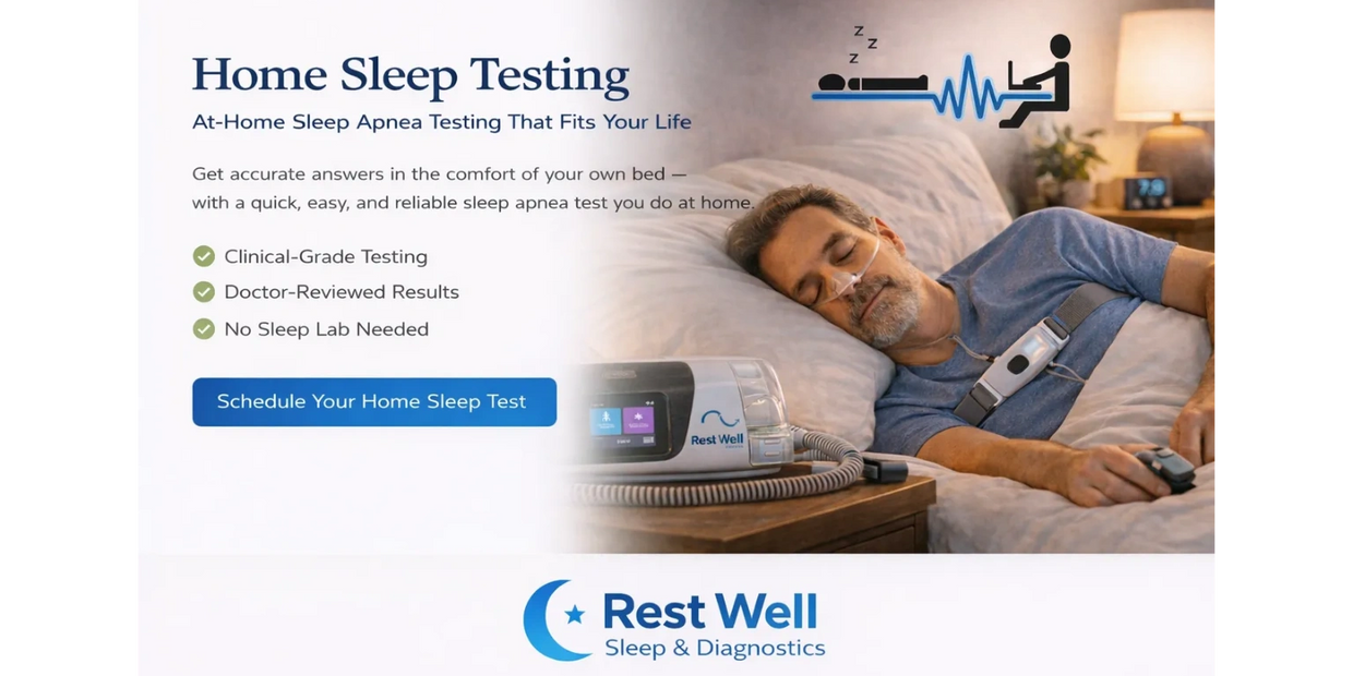Home Sleep Testing (HST) is a physician-approved diagnostic test that evaluates your breathing, oxygen levels, heart rate, and sleep patterns β all from the comfort of your home.
